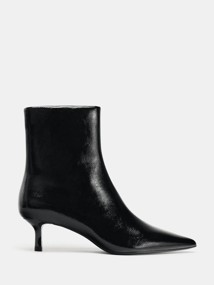 Para acompañar el look, estos botines de tacón kitten son ideales. Elegantes, cómodos y no roban atención al conjunto. Además, el tacón bajo es perfecto para aguantar toda la cena, los brindis y las sobremesas eternas sin sufrir.