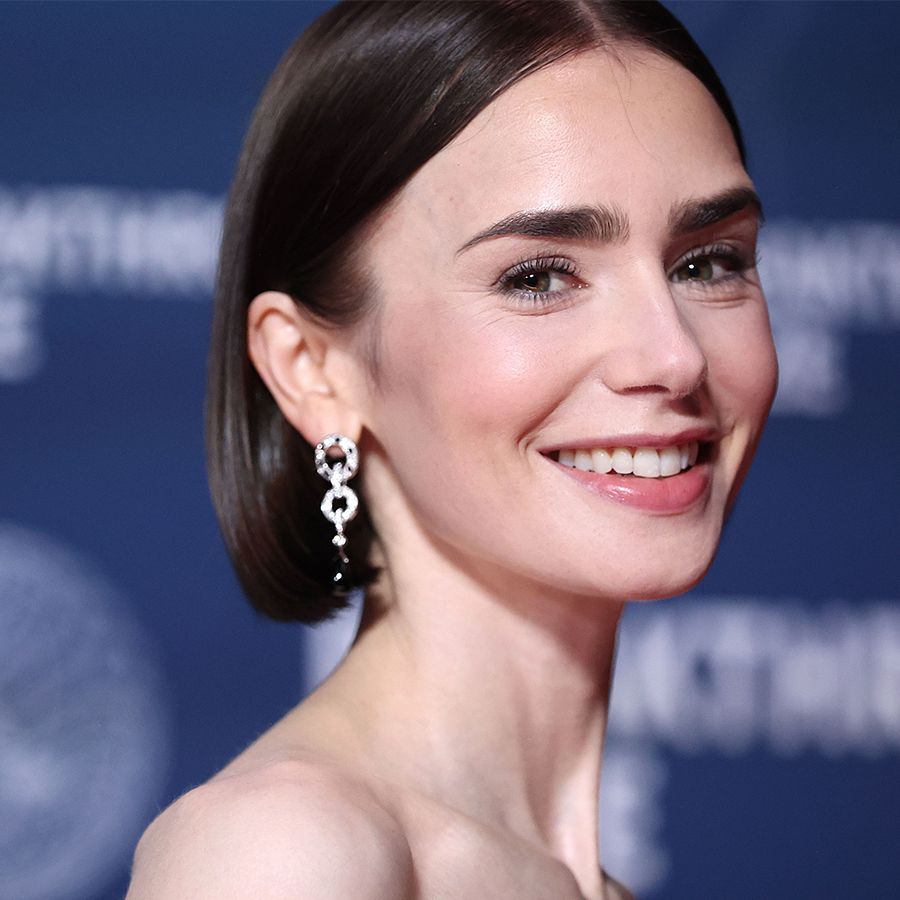 El traje pantalón festivo de Lily Collins es la alternativa más elegante de la temporada