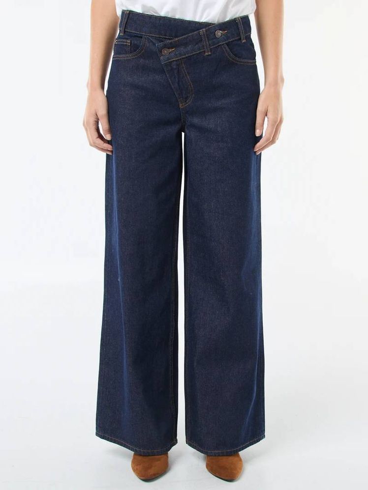 Jeans wide leg con cintura cruzada